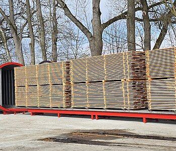 Ein weiterer sparsamer Holztrockner ist der kostengünstige Air-Classic Trocknungscontainer im Frischluft-Abluft-System, auch zum Hitzebehandeln von Verpackungsholz geeignet.