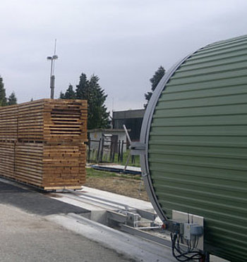 Wsad drewna jest wwożony i wywożony z komory za pomocą automatycznej wciągarki obsługiwanej z pilota. Pozwala to zaoszczędzić czas przy załadunku i rozładunku suszarni.