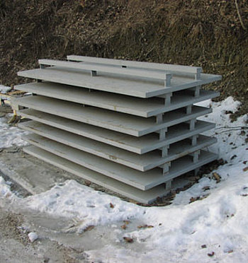 Płyty obciążające układane są na sztaplu drewna (górnej warstwie wsadu drewna) w celu ochrony łatwo skręcających się gatunków drewna jak na przykład buk czy klon.