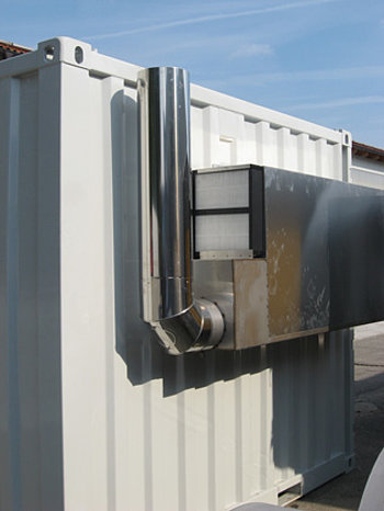 Wymiennik o przepływie krzyżowym pracujący z 90% sprawnością pozwala na oddanie ciepła przez powietrze odlotowe do powietrza wchodzącego do kontenera. Zastosowanie tego rozwiązania pozwala na oszczędność kosztów ogrzewania do około 25 %.